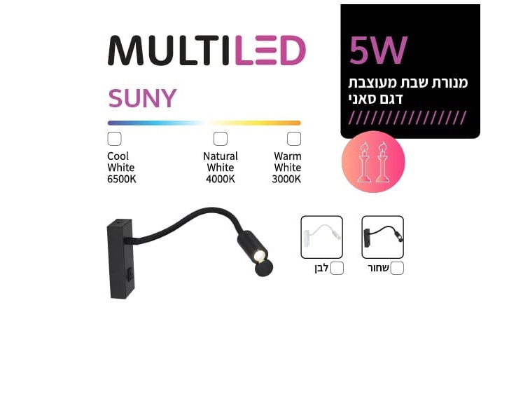 פונקציות: שליטה בעוצמת האור גם בשבת, על ידי תריס הניתן להזיז בקלות עד להחשכה מלאה