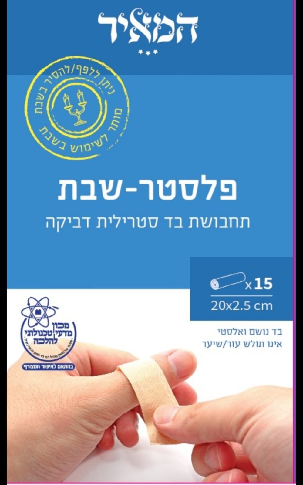 / פלסטר שבת. 15 יחידות תחבושות לשבת כשרות מכון הטכנולוגי